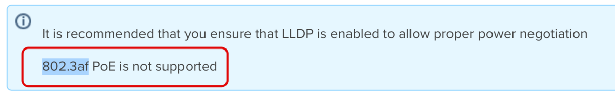 同じHardwareであるのでMerakiモードでも802.3afをサポートしていると思いがちなのですが、MerakiのDatasheetを見てみると802.3afは未サポートとなっています。