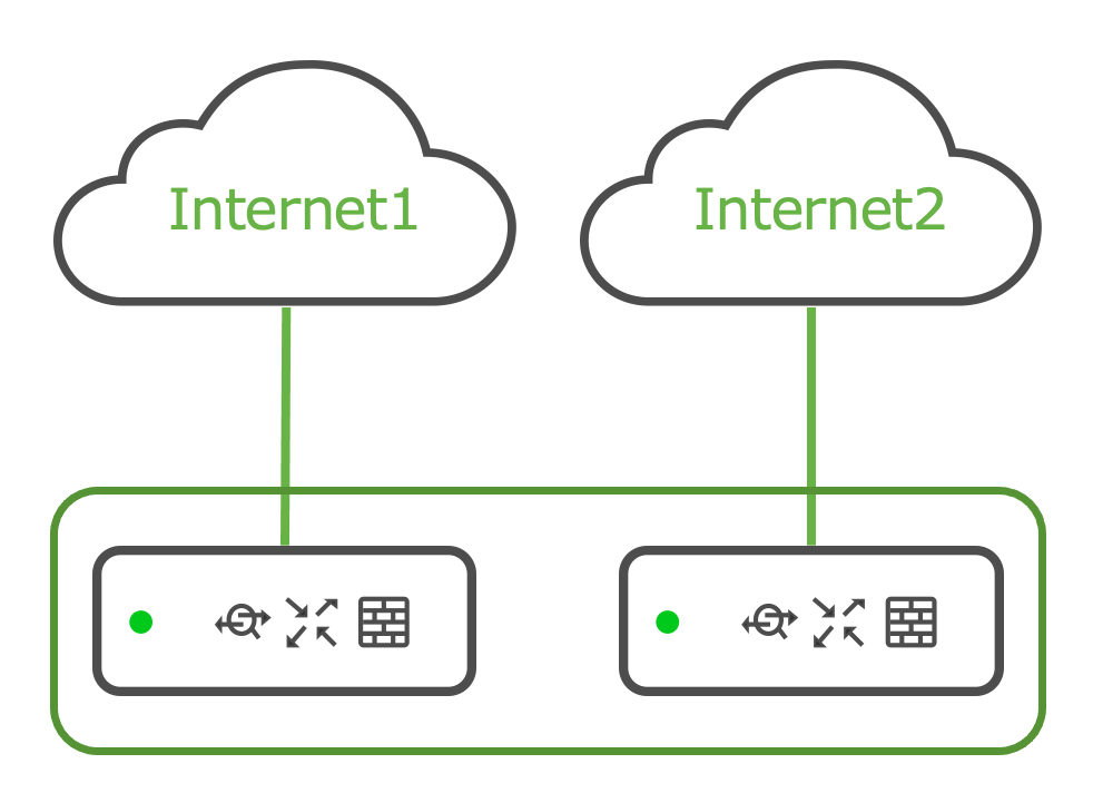 この構成は正常稼働時は2つのInternet回線が利用されないことになりますので、ミッションクリティカルな拠点や通信要件がある場合に採用される構成です。